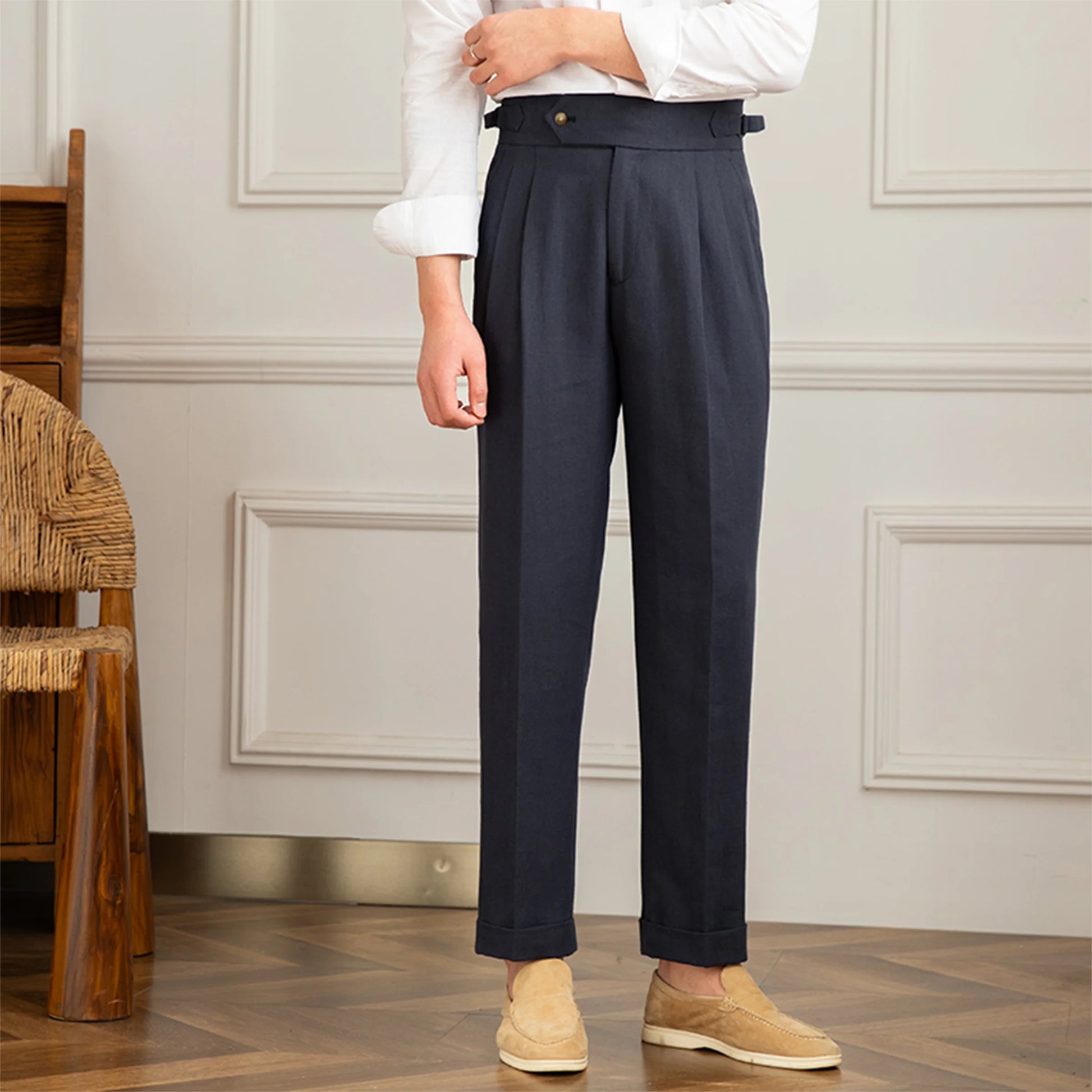 The Birmingham Linen and Cotton High Waist Trousers offer a masterclass in understated refinement. Blending 55% cotton with 45% linen, they strike the ideal balance between structure and breathability—perfect for the unpredictable British climate. Whether you’re navigating the office, enjoying a weekend in the countryside, or dressing up for an evening out, these trousers move with you in effortless style. Cut with a flattering high waist and finished with precision, they embody the quiet confidence of modern British tailoring.