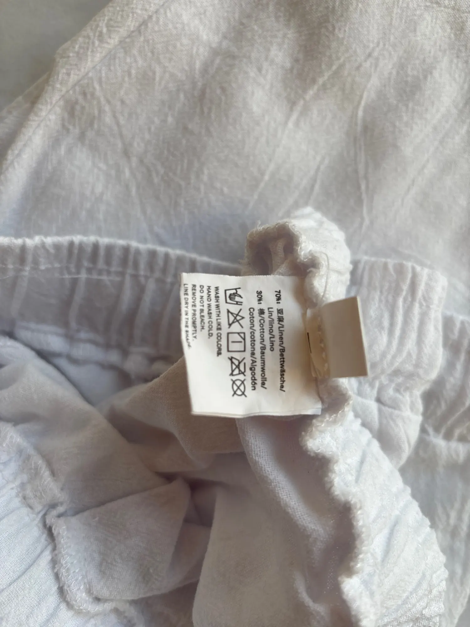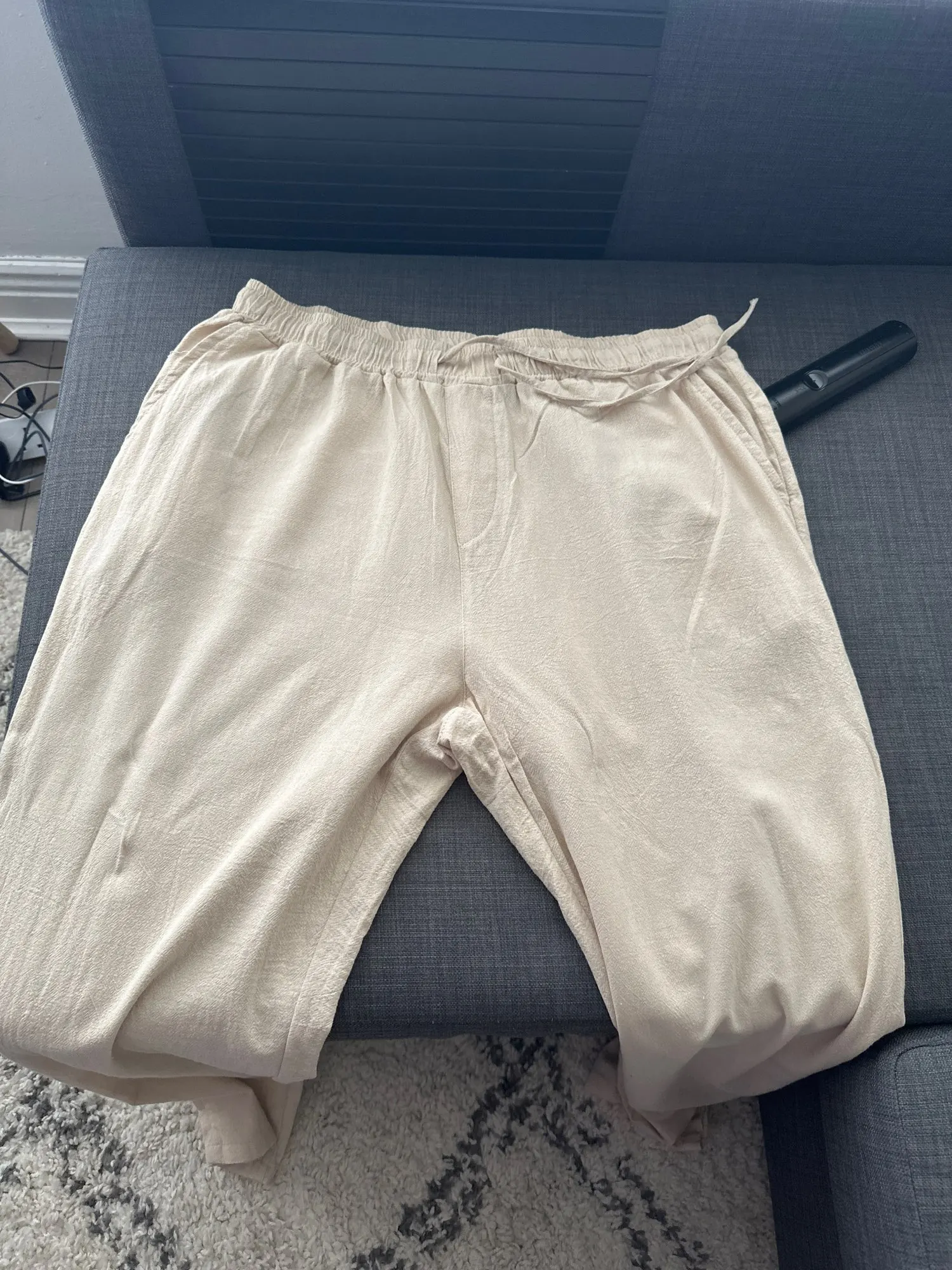 Lightweight pants made of linen blend fabric, wide. I usually wear size 34 and I purchased XL, but maybe L would have been better.