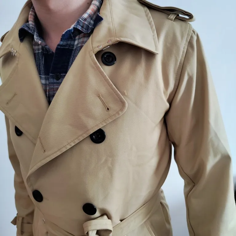 cool trench coat. I ordered it according to my measurements, but it was still tight in the chest, so I initiated a return and discussed it with the seller. He suggested ordering a size larger but also raised the price. Now I'm waiting for the second trench coat. The money for the order has already been refunded.